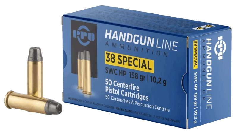$30.27 You MUST contact us prior to buying ammo shipping to CA, CT, IL, MA, MD, NJ, NY or WA. NO AMMO sale to W.DC. or NYC.PPU .38 SPECIAL SWC HP 158G 50RD BOX 10 BOXES PER CASE