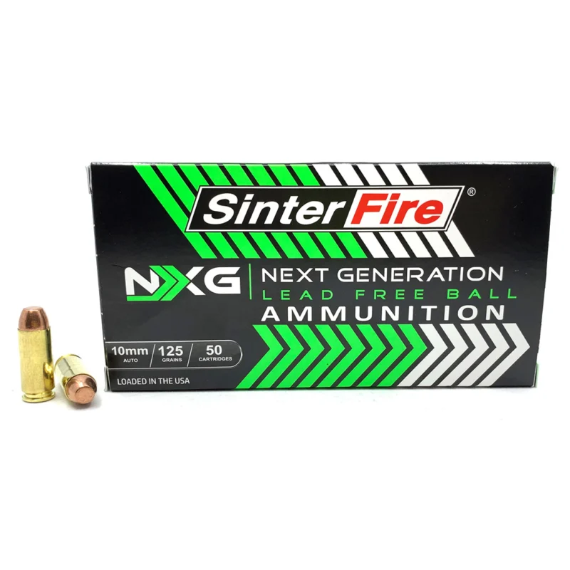 $34.99 You MUST contact us prior to buying ammo shipping to CA, CT, IL, MA, MD, NJ, NY or WA. NO AMMO sale to W.DC. or NYC.Sinterfire NXG Lead Free Ball Pistol Ammo 10mm 125 gr. Lead-Free Ball 50 rd.