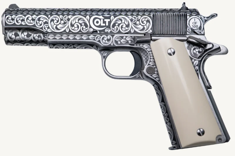 $1,805.14COLT GOVERNMENT 1911 SILVERADO 45ACP PISTOL FULL ENGRAVED/IVORY GRIP 7RD MAGAZINE 1-300 UNITS