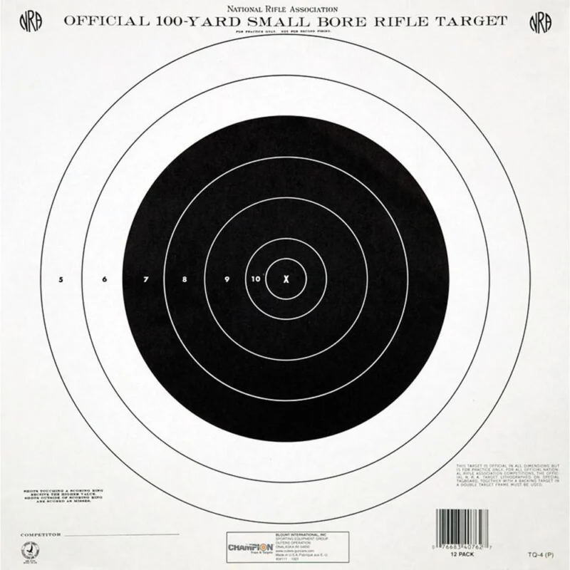 $37.84Champion Official NRA Paper Targets TQ-4(P) 100 yd Small Bore Rifle Single Bull 100/ct