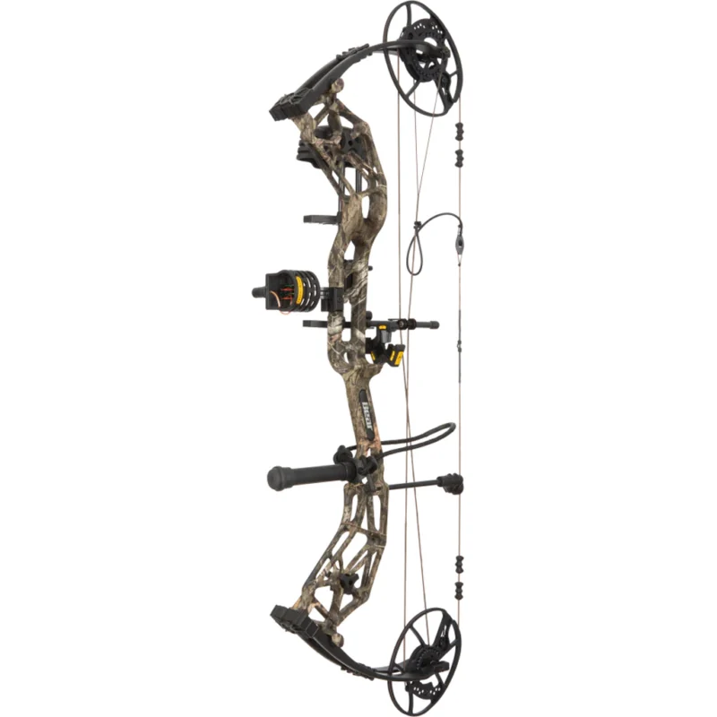 The Bear Paradigm RTH Package features a 33-inch axle-to-axle length and a generous 6.5-inch brace height for forgiveness. Equipped with the ultra-efficient DHC cam system, it achieves speeds up to 333 FPS with an 80% let-off. The bow includes a Trophy Ridge integrated 4-pin sight, IMS Whisker Biscuit V, 5-Spot quiver, stabilizer, peep sight, and D-loop, providing a silent and vibration-free shooting experience.
