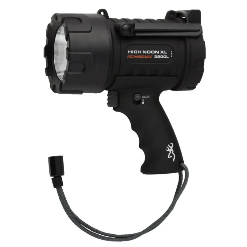 This ultra–lightweight spotlight has a powerful beam that can shine up to 3200 lumens for 520 yards making it the brightest spotlight in our line. Perfect for waterfowl hunting it is waterproof submersible and it even floats if you should happen to drop it overboard. New USB charging technology allows the battery to charge much faster. You can use the bi-directional charging cable to utilize the Power Bank feature to keep your phone charged up in the field.