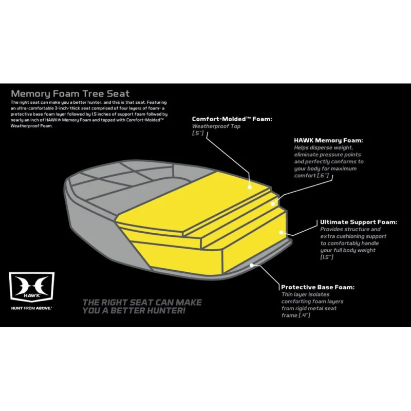 Featuring lightweight aluminum construction, a spacious 24″x30″ oversized grip platform with heavy duty cables and pressure relieving memory foam seat that forms to your body for ultimate cushioning support. Tree Digger teeth ensure wobble-free performance and the premium Teflon washers keep squeaks from ruining your hunt. Weight Capacity: 300 lbs., Stand Weight: 12 lbs.