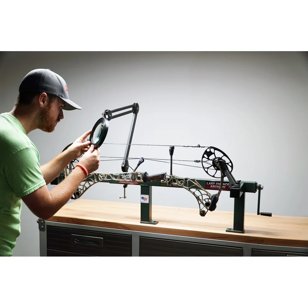 The Last Chance Mag Bright 5x Magnifier is designed to attach to a table, bow press, or any other surface. It will brighten and magnify your work area.