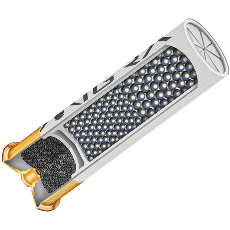 Migra Staxd Ultimate Field Shotgun Ammo in 12-gauge offers an innovative approach to field bird hunting with its unique stacked lead load. Designed for optimal performance, each 2 3/4-inch shell contains a 1 3/8 oz. load of 6-8 shot, achieving a muzzle velocity of 1300 fps for consistent, reliable patterns. Crafted with precise shot stacking technology, this ammunition ensures improved pattern consistency and shortened shot strings, making it a top choice for dedicated hunters looking to enhance their effectiveness in the field.