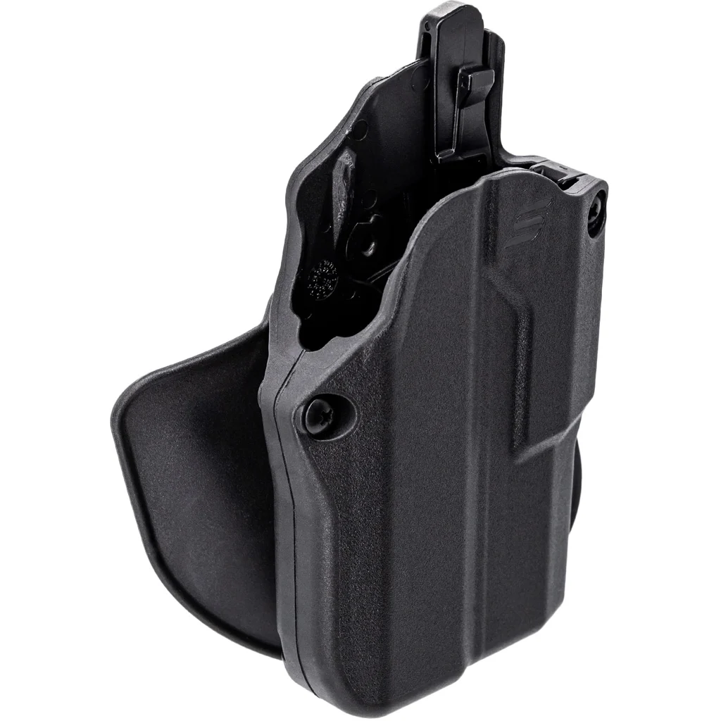 The Safariland Solis ALS Concealment OWB Holster offers a secure and intuitive carry solution with the Automatic Locking System (ALS) for enhanced firearm retention. Designed for outside-the-waistband (OWB) carry, it ensures a quick, natural draw with a simple thumb release. Made from durable, non-marking SafariSeven nylon, this holster withstands extreme temperatures ranging from -50F to 300F without losing integrity. Its open muzzle end design prevents debris buildup and accommodates threaded barrels, making it a reliable choice for concealed carry or cross-draw use. Note: This holster does not accommodate the RMRcc optic.