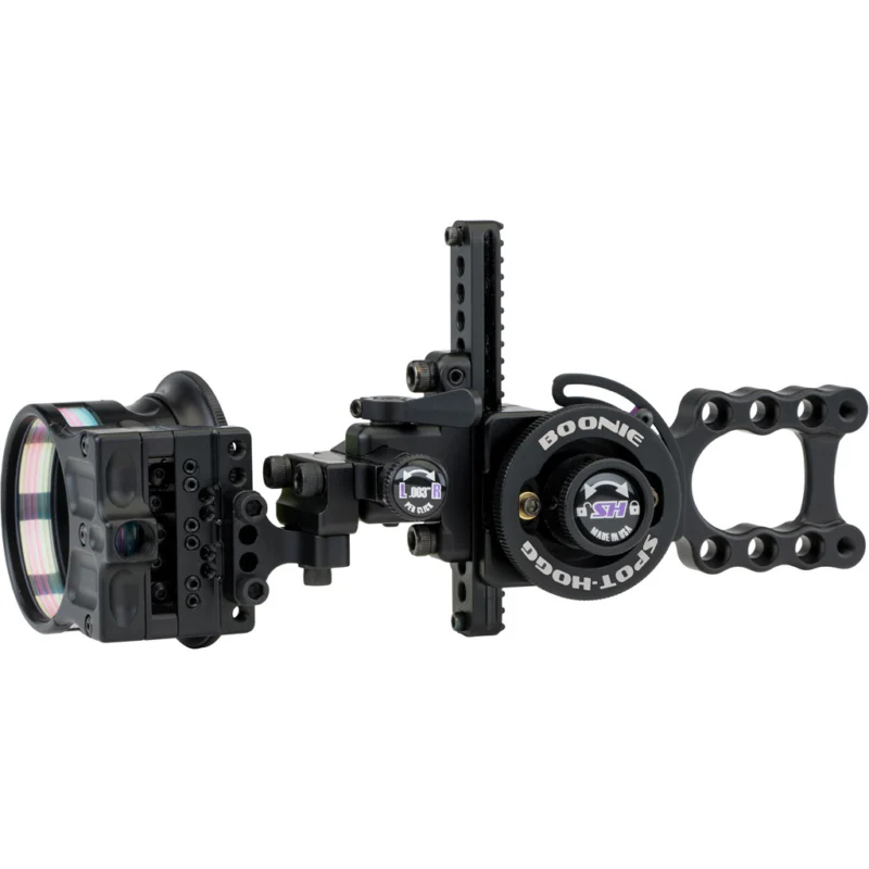 The Spot Hogg Boonie Hard Mount Sight incorporates state-of-the-art sight technology with silent, click-free adjustments, micro-adjustable 2nd and 3rd axis, and tool-less adjustment for precision and convenience. The Boonie’s HRD (Hardened Rail Design) Technology eliminates bushings, slop, and buzz, spreading out sight marks for clarity and ease of use. A quick disconnect feature amplifies its adaptability, making it an indispensable tool for any archery enthusiast.