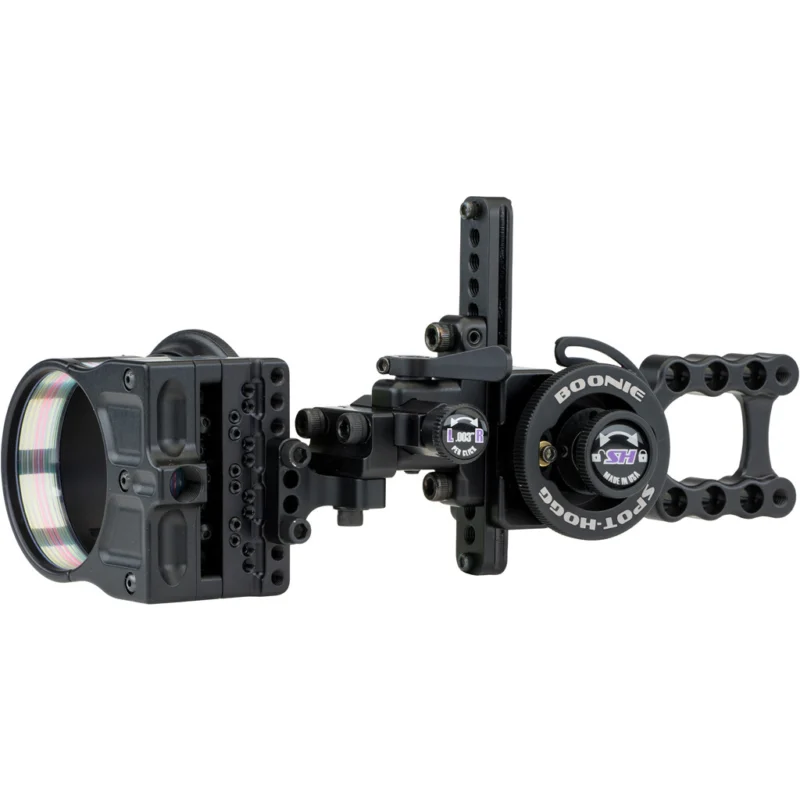 The Spot Hogg Boonie Hard Mount Sight incorporates state-of-the-art sight technology with silent, click-free adjustments, micro-adjustable 2nd and 3rd axis, and tool-less adjustment for precision and convenience. The Boonie’s HRD (Hardened Rail Design) Technology eliminates bushings, slop, and buzz, spreading out sight marks for clarity and ease of use. A quick disconnect feature amplifies its adaptability, making it an indispensable tool for any archery enthusiast.