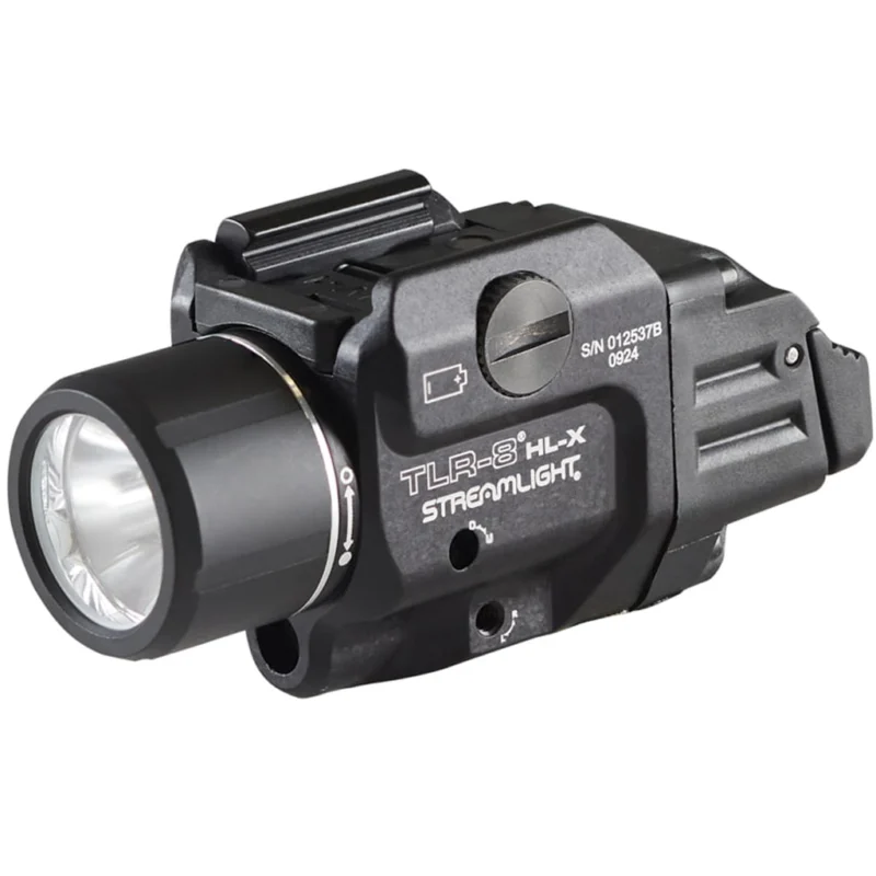 The Streamlight TLR-8 HL-X USB System is a powerful, 1000-lumen weapon light designed for tactical applications, featuring an integrated red laser for precision targeting. Engineered with durable aluminum construction and an IPX4 water-resistant rating, this compact yet high-output light delivers a 297-meter beam distance with 22,000 candela for maximum visibility. Its multi-fuel capability allows operation with an SL-B9 USB rechargeable lithium-ion battery pack or a CR123A lithium battery for enhanced flexibility. The ambidextrous high and low switches ensure ergonomic control, while the rail grip clamp system provides secure, tool-free attachment to a wide range of firearms. A “”safe-off”” feature prevents accidental activation, preserving battery life when not in use.