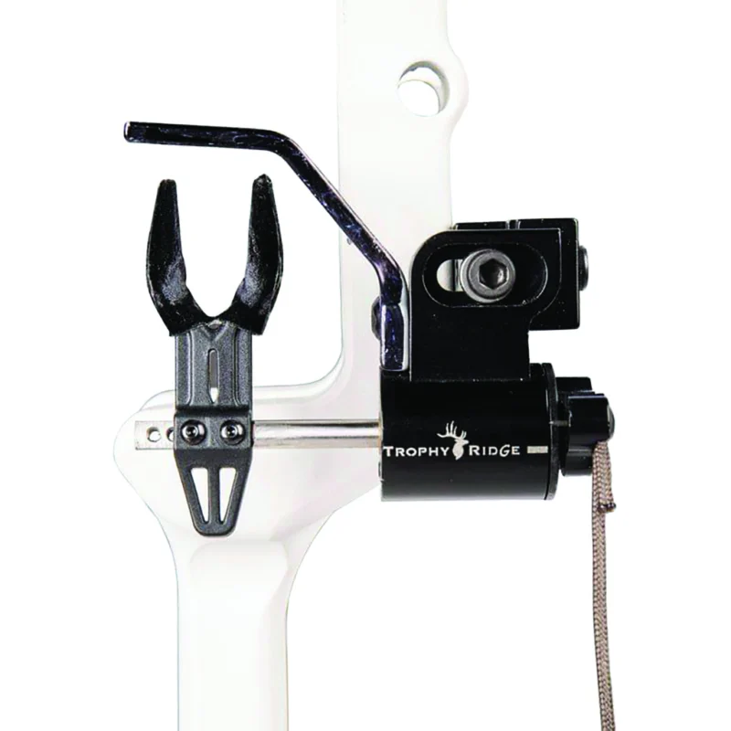 The Trophy Ridge Sync Rest features full arrow containment and a laterally-adjustable launcher arms allow you to fine tune your shot. Cable-driven technology ensures a smooth, reliable draw cycle flight after flight. Easy corrections with windage and elevation adjustments. Includes noise-reducing laser-cut felt and all mounting hardware for quick and easy installation.