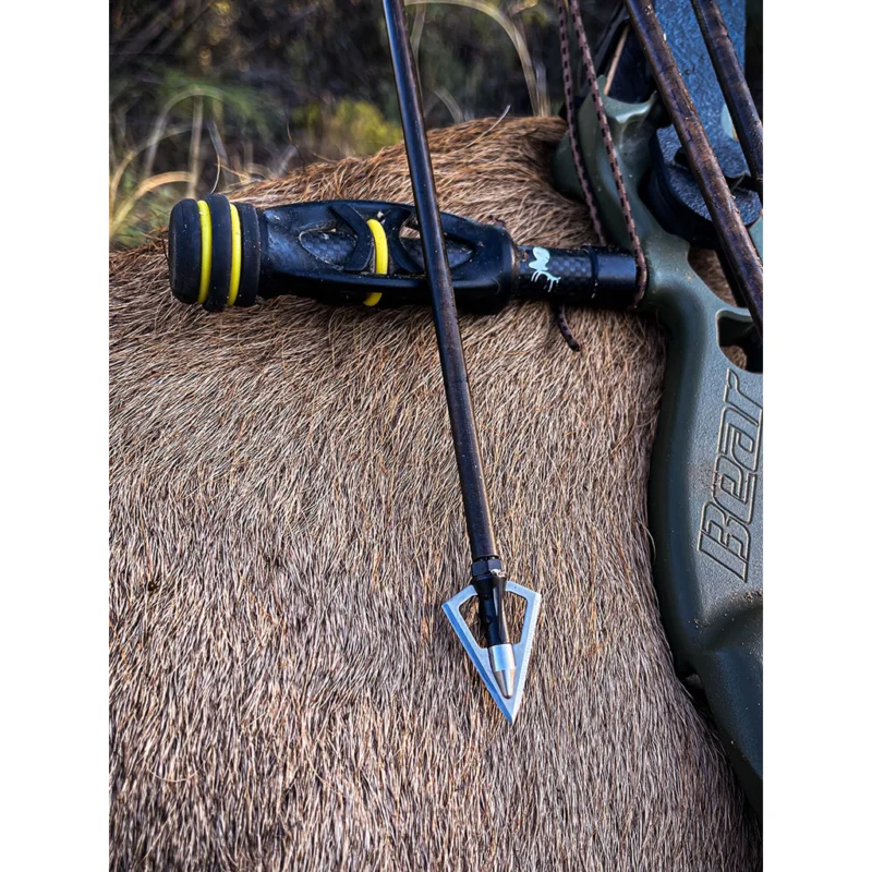 The Sharpshooter Traditional 150-grain broadheads are engineered to meet the demands of traditional and modern archers alike. Designed with a cut-on-contact blade locking system, these broadheads feature a hardened stainless steel forward section that aligns the main blade for consistent and accurate arrow flight. The Sharpshooter has a 1″ cutting diameter, with 0.040″ main blades and 0.027″ replaceable bleeder blades, offering superior penetration and reliability. These broadheads come in a pack of three and are perfect for traditional, recurve, or high-speed bows to enhance front-of-center (FOC) balance.