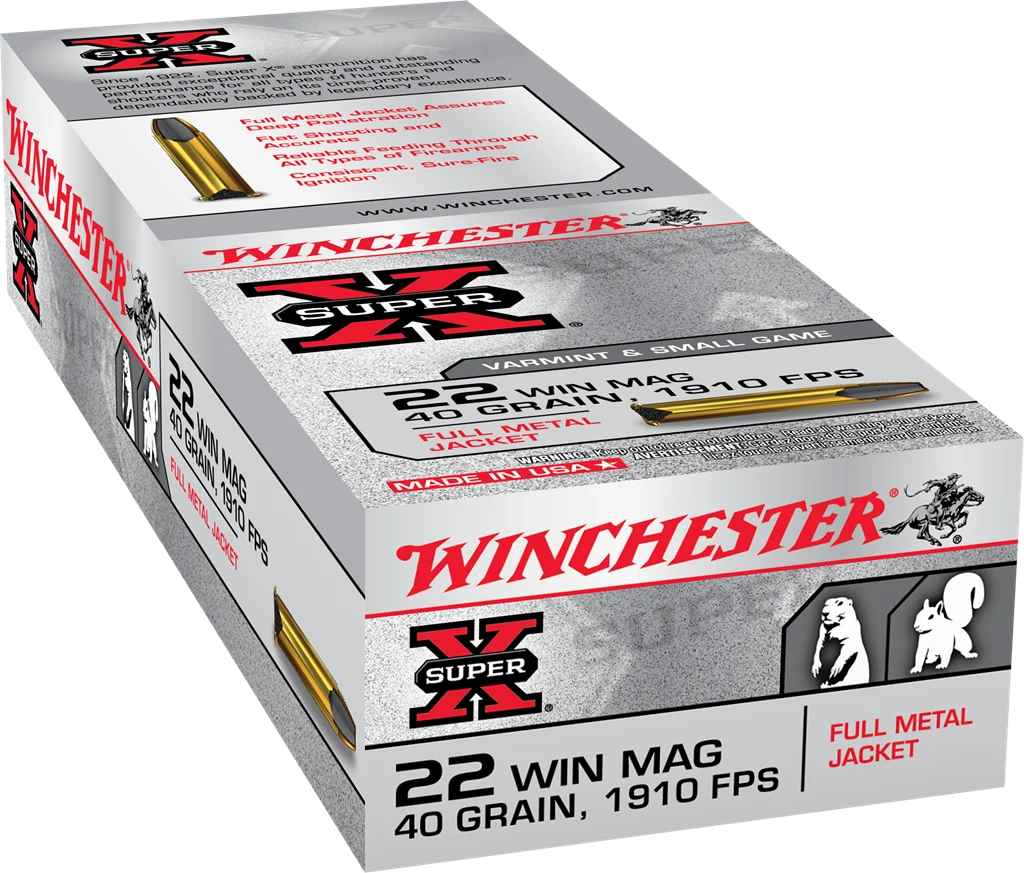 $18.87 You MUST contact us prior to buying ammo shipping to CA, CT, IL, MA, MD, NJ, NY or WA. NO AMMO sale to W.DC. or NYC.WINCHESTER SUPER-X HV 22WM 40GR FMJ