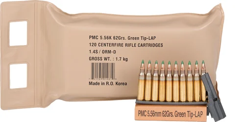 $99.40 You MUST contact us prior to buying ammo shipping to CA, CT, IL, MA, MD, NJ, NY or WA. NO AMMO sale to W.DC. or NYC.PMC 5.56K 5.56X45 62GR (M855) – 120RD BATTLE PACK 5PK/CS